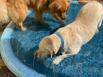 During their stay, your dog becomes part of our family. We live on the property and take pride in personally caring for your four legged family member throughout their time with us. We accept a limited number of dogs ensuring each guest receives an abundance of playtime and attention. Dogs are separated into playgroups according to size and temperament. Our guests play in large fenced exercise yards, splashing in the kiddy pools, napping in the shade, and enjoying their new friends. When the day is over and the pups are tired, the nights are spent in our climate controlled Bunkhouse (for our larger guests) and The Cottage for our smaller guests. Each provide a restful nights sleep after a busy day.